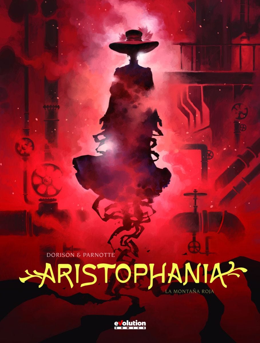 Libro de historietas encuadernado en rústica de 64 páginas interiores en color más cubiertas en color que contiene la traducción del original Aristophania 4. La montagne rouge publicado por Dargaud en 2022 para el mercado francobelga. Serie abierta