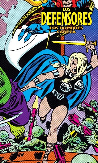 ¡La conclusión de la etapa de Steve Gerber en Los Defensores! El guionista que rompía constantemente las reglas del género superheroico ofreció en estos episodios una de sus sagas más celebradas. La visita de los Guardianes de la Galaxia a nuestro tiempo, el pasado de Halcón Oscuro, la vuelta de Nebulón, un cruce alucinante con Howard el Pato, el personaje fetiche de Gerber, y también… ¿Estás preparado para la amenaza de los Hombres Cabeza?