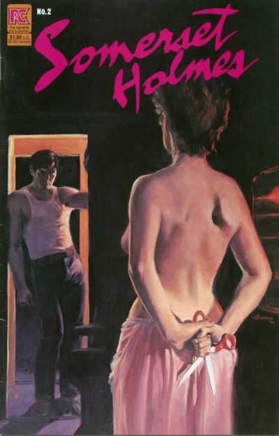 Somerset Holmes was a 6-issue comic book mini-series written by Bruce Jones and co-plotted by April Campbell with art by Brent Anderson. The first four issues were published by Pacific Comics; after Pacific went out of business the last two issues were published by Eclipse Comics. The first issue of Somerset Holmes was cover dated September 1983, the last December 1984. Somerset Holmes tells the story of an amnesiac young woman, chased by criminals intent on killing her, and her attempts to stay alive while simultaneously struggling to solve the mystery of her past life and true identity. She takes her assumed name, Somerset Holmes, from a sign advertising a housing project, Somerset Homes. The physical appearance of the main character was based on author Jones' wife April Campbell, a former model, who posed as photo reference for the character, including the image used for the first issue's cover.