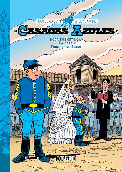 Tenemos el placer de anunciarles el próximo enlace de la señorita Appeltown con… ¿Con quién? ¿Por qué? ¿Cómo? Para conocer las respuestas habrá que aceptar la invitación y asistir a la Boda en Fort Bow. Y tras la ceremonia, llega el momento de reunirse con viejos amigos y hacer un hermoso viaje, si bien los reencuentros y el viaje que les esperan a Blutch y Chesterfield en La caza no son precisamente memorables. Para terminar, en Todo sobre Stark conoceremos por fin la historia de uno de los personajes más icónicos de los Casacas Azules, en una aventura con final feliz, aunque, como en la vida real, no para todos los implicados.