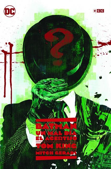Tom King y Mitch Gerads, el dúo creativo ganador del Premio Eisner, responsables de Mr. Milagro, El Sheriff de Babilonia y Strange Adventures, se juntan de nuevo para sumergirse en la mente de uno de los enemigos más inteligentes de Batman: El Acertijo. Todo empieza con el villano acabando con la vida de otro hombre a plena luz del día. Es el pistoletazo de salida de un épico thriller psicológico en el que nada es lo que parece.