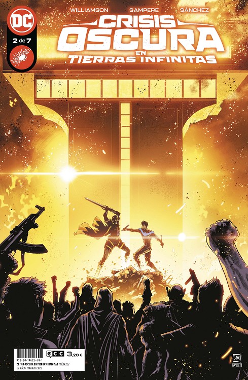 Cuaderno de historietas grapado de 32 páginas interiores en color más cubiertas que contiene la traducción del comic book original Dark Crisis on Infinite Earths número 2 publicado en USA por DC Comics. Serie de 7 volúmenes.El mundo arde. Con la Liga de la Justicia muerta, ¡el mal campa a sus anchas...