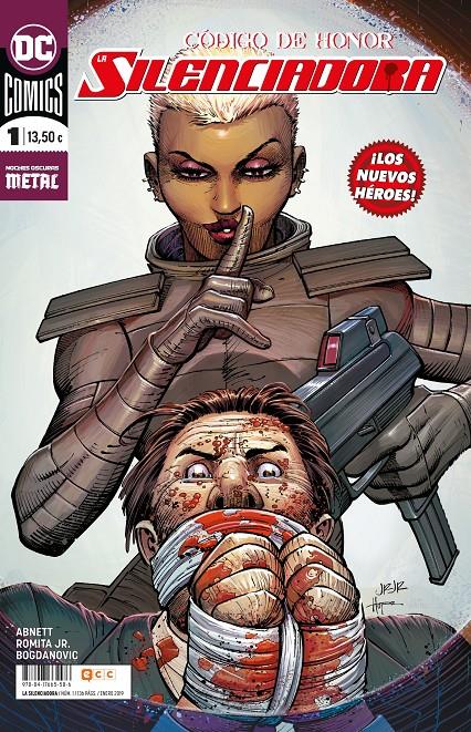 ¡Nueva serie! ¡De las páginas de Noches oscuras: Metal! ¡Dan Abnett (Aquaman) y John Romita Jr. (Superman) dan forma a la asesina más mortífera del Universo DC! Entrenada hasta la perfección, armada con habilidades metahumanas devastadoras, la Silenciadora es virtualmente invencible... pero nadie ha oído hablar de ella. Después de décadas como asesina de élite para Leviatán, Honor Guest vive ahora una vida normal, con una familia normal, en una casa normal. Pero el pasado ha regresado para conducirla a una misión mortal... y Talia Al Ghul no aceptará un “no” por respuesta. El dibujante revelación Viktor Bogdanovic (El nuevo Super-Man) completa el equipo creativo de este primer arco argumental, Código de honor.