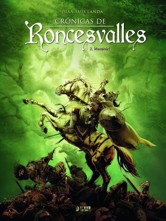 Libro de historietas encuadernado en cartoné de 56 páginas interiores en color más cubiertas que contiene la traducción del original Chroniques de Roncevaux 2. Munjoie !
