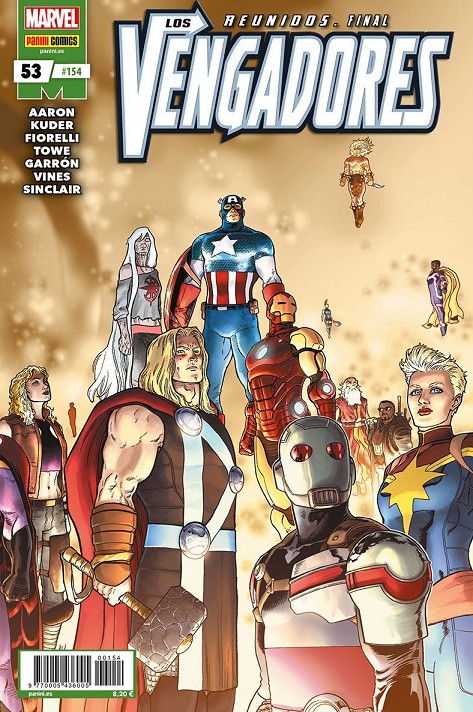 Aquí es: "Vengadores Reunidos", capítulo final. La mayor batalla de la historia de Los Héroes Más Poderosos de la Tierra y la etapa de cinco años desarrollada por Jason Aaron llegan a su fin, con un número especial dibujado por el increíble Javier Garrón junto a unos cuantos artistas invitados, una formidable agrupación de Vengadores y unos pocos golpes emocionales a la manera Marvel.