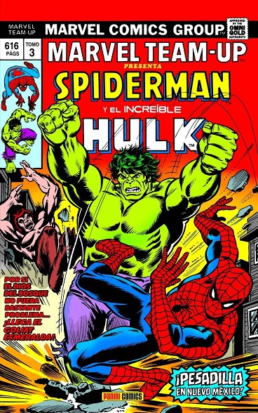 Libro de historietas encuadernado en cartoné de 616páginas interiores en color más cubiertas que contiene la traducción de los comic books originales Marvel Team-Up Volume 1 números 41 a 64, Marvel Team-Up Annual número 1, Marvel Two-In-One número 17 y Marvel Premiere número 31 con material de Marvel Treasury Edition número 13 publicados en USA por Marvel Comics.