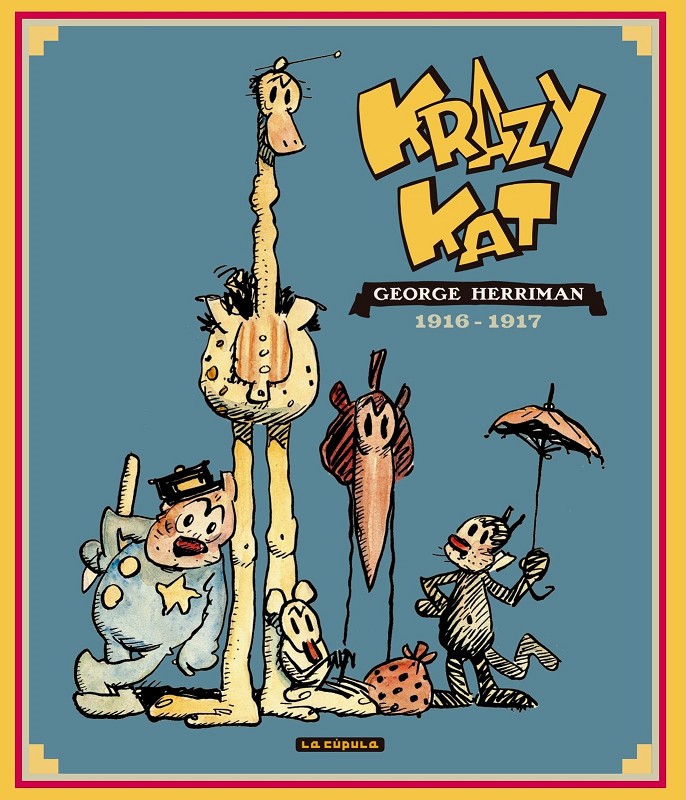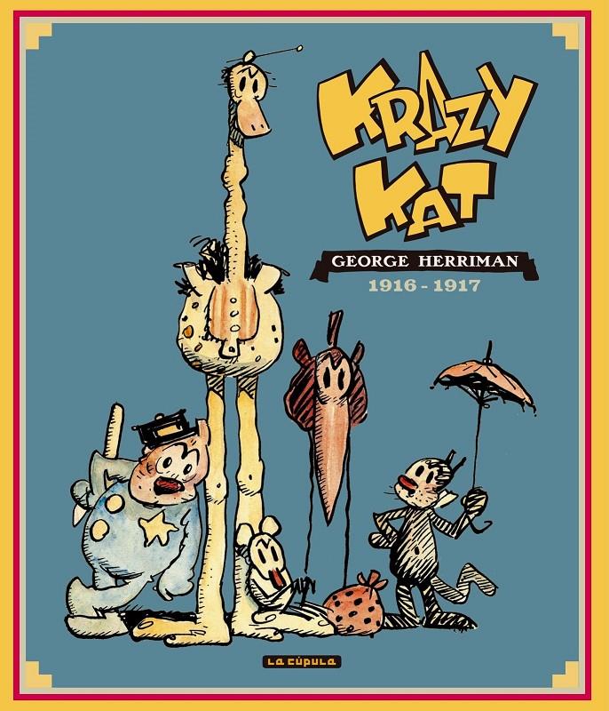 Libro de historietas encuadernado en cartoné de 136 páginas interiores en color más cubiertas que contiene la traducción del original Krazy Kat: The Komplete Kolor Krazy Kat Volume 1 que contiene las planchas dominicales publicadas entre 1916 y 1917 en un cuidadísima edición de gran formato y con nueva traducción. Serie abierta.