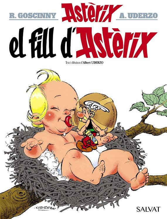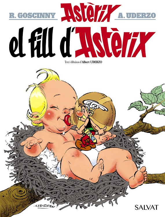 Llibre d'historietes enquadernat en cartoné de 48 pàgines interiors en color més cobertes que conté la traducció de l'original Astèrix 27. Le fils d'Astèrix publicat per Les Éditions Albert René en 1983 per al mercat francobelga.