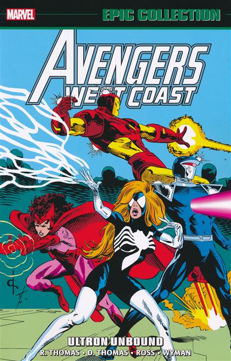 The marriage of Ultron! But when the maniacal android meets his adamantium mate, will it be a match made in robot heaven? Or will the so-called 'War Toy' Alkhema - with the brain patterns of Mockingbird - reject her would-be husband? As the unhappy couple bicker over the fine details of destroying humanity, the West Coast Avengers are caught in the middle - fighting for their lives! Plus: Spider-Man swings by, and he and Spider-Woman become tangled in a Deathweb! The Whackos and Wolverine are embroiled in a cold war with Russian villains the Bogatyri! Goliath battles Goliath! And as the Pacific Overlords wreak havoc, Jim Rhodes returns to the team as War Machine - and the young hero Darkhawk joins the fun! Collecting AVENGERS WEST COAST #83-95 and ANNUAL #7-8, and material from DARKHAWK ANNUAL #1 and IRON MAN ANNUAL #13. Rated T