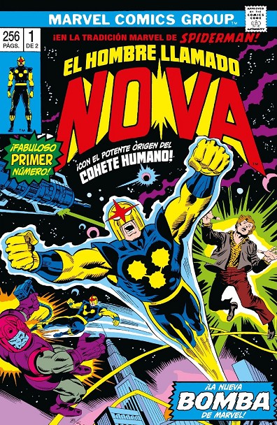 Libro de historietas encuadernado en rústica de 256 páginas interiores en color más cubiertas en color que contiene la traducción de los comic books originales The Man Called Nova números 1 a 12 y The Amazing Spider-Man número 171 publicados en USA por Marvel Comics Serie de 2 volúmenes.
