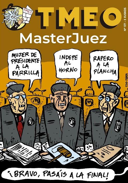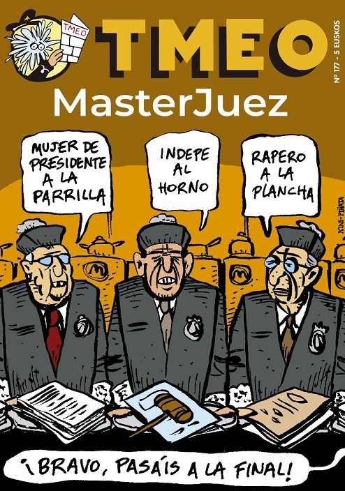 Después de un verano que no hemos olvidado porque toda la plantilla tmeística ha tenido su merecido descanso en el Caribe a cuenta del TMEO, volvemos a la carga. Y repetimos curso porque no aprendemos nunca las lecciones. Seguimos siendo chungos, soeces e inoportunos. Pero que no digan que no somos fuente de inspiración. Los de Vaya semanita , ya nos copiaron en su día, los de la peli de no sabemos cuántos apellidos vascos, ídem y ahora nos hemos cascado una portada que seguro veremos próximamente en alguna cadena, no de wáter, sino televisiva, convertida en concurso supermolón: MasterJuez . Pero no nos importa, porque de eso se trata: somos innovadores, somos industria creativa, somos I+D o como se llame. La hostia bendita en parir chorradas, en resumen.