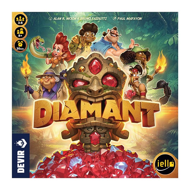 Diamant es un juego de push your luck creado por Bruno Faidutti y Alan R. Moon, en el que deberemos representar a exploradores que desean quedarse con la mayor cantidad de diamantes posible. Para conseguirlo deberán, en todos los turnos, tomar la sabia decisión de si avanzan en su viaje o si se detienen antes de perecer.