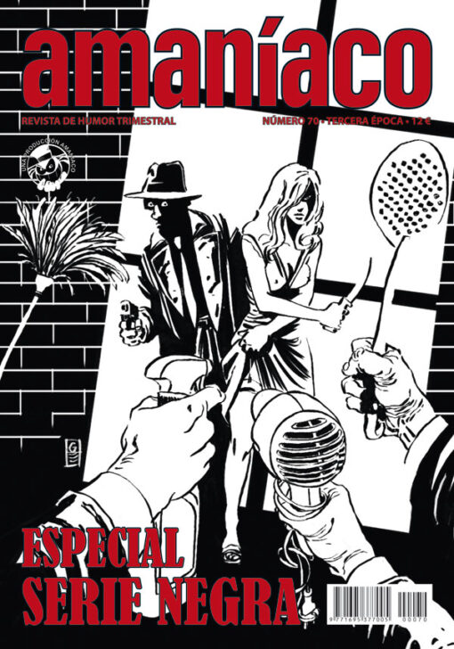 En la revista tenemos algunos autores amantes del suspense, que hasta el último momento no sabemos cuándo entregarán sus páginas, un editor que amenaza con romper piernas a los dibujantes que entregan tarde, el misterio de saber si el número que acaba de salir de imprenta se venderá o no se venderá… con todos estos elementos, ¿qué puede salir mal? Pues era lo suyo, un Amaníaco especial serie negra.
