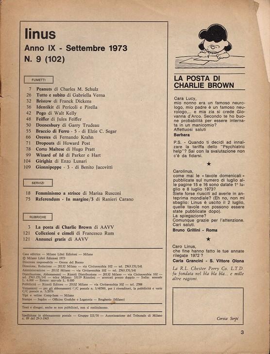 • LINUS 1973 ANNO 09 # 08 REVISTA ORIGINAL EN ITALIANO (SIN PORTADA)