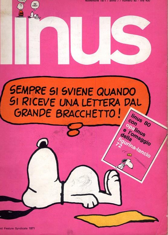 Su formato "grande" perduró hasta 1979, cuando se convirtió en una revista "de bolsillo". Luego, en 1992, volvió al formato "grande". El primer número de Linus apareció en abril de 1965 editado por Milano Libri, una subsidaria de Rizzoli. Su director era Giovanni Gandini. Desde 1972, con la dirección del sucesor de Gandini, el intelectual, periodista y escritor Oreste del Buono, Linus llegó a ser una de las revistas más celebradas de Italia. Linus fue el lugar donde una gran cantidad de importantes cómic italianos vieron la luz por primera vez, incluyendo Neutron/Valentina de Guido Crepax y Girighiz de Enzo Lunari. También se publicaban regularmente tiras satíricas de destacados autores italianos como Altan, Alfredo Chiappori, Sergio Staino, Ellekappa, Angese, Vauro, Bruno D'Alfonso y extranjeros como Jules Feiffer. Más espacio aún ocupaban series extranjeras como Peanuts, Popeye, Li'l Abner, Bristow, Dick Tracy, etc.