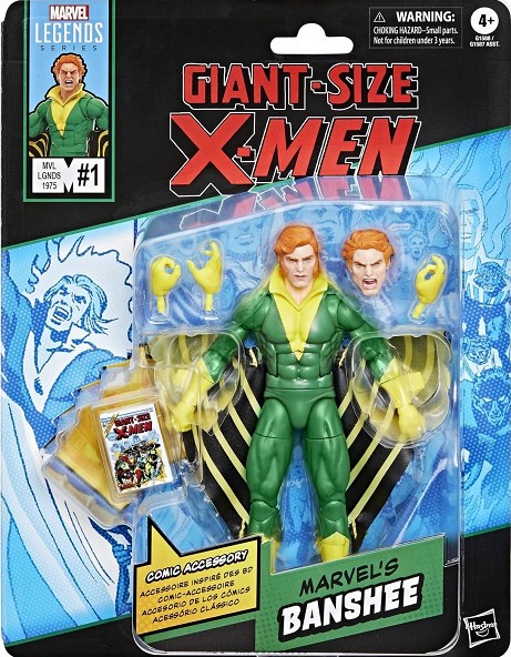 La figura de Banshee se incorpora a la colección Marvel Legends Series. Mide 15 cm y está basada en el personaje de los cómics "Giant-Size X-Men". Cuenta con más de 20 puntos de articulación e incluye 3x manos alternativas, 1x cabeza extra y 1x réplica a escala del cómic con la portada de "Giant-Size X-Men #1" de 1975. UNIDADES LIMITADAS