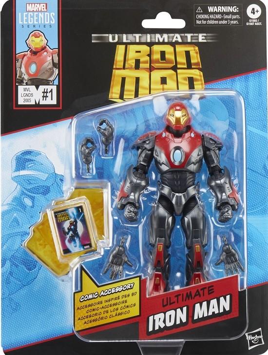 Se incorpora a la línea Marvel Legends Series la figura de Ultimate Iron Man, inspirada en su apariencia en los cómics de "Ultimate Iron Man". Mide 15 cm y cuenta con más de 20 puntos de articulación. Contiene 2x pares de manos extras y 1x réplica a escala del cómic con la portada de "Ultimate Iron Man #1" de 2005. UNIDADES LIMITADAS
