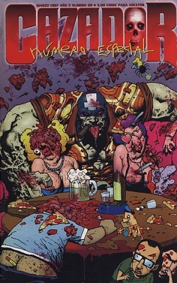 El cazador de aventuras es un comic que existió en la Argentina entre 1992 y 2001, famoso por su tono irreverente. El primer número del cazador de aventuras salió en octubre de 1992. Se trataba de un personaje que se asemejaba a un superhéroe, pero en realidad era grotesco y bruto. Vive en una iglesia abandonada, usa una cruz invertida, y su mejor amigo es un extraño duende al que le dice "tío pastafrola". Los primeros siete números fueron en blanco y negro, pero en 1995 decidieron ponerle color y la revista tuvo su mejor época hasta 1999. Las historias son unitarias, sin una progresión argumental o evolución en el personaje. Con mucha violencia y sexo, el Cazador se ve envuelto en aventuras que lo mezclan con tópicos del terror y la ciencia ficción, personajes de historieta argentina y extranjera, o personajes tomados de la realidad. El Cazador sigue siendo bruto, y sólo le importa pasarla bien y evitarse problemas, comer, dormir y conseguir mujeres.