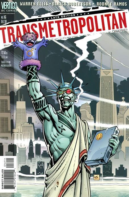Transmetropolitan, Warren Ellis' and Darick Robertson's grand pastiche, follows Spider Jerusalem, neo-gonzo journalist extraordinaire, through the backyards and the rooftops of the future. Ellis's wit is bang on the job, surely at its prime, in all its spitfire, vulgar glory. And the nosedive the series takes somewhere in the middle comes with scary accuracy, becoming a soap box commentary on our generation. Touching everything from anthropomorphism to religion to politics with a cheery sense of dread and disgust in its 60 issue run, and featuring one of the scariest governments post-1984, this is one of Vertigo's imprint-defining titles.