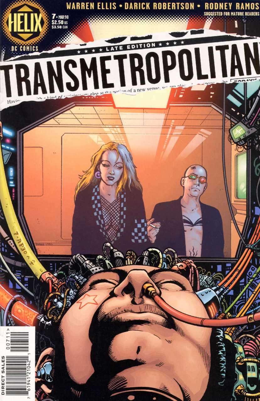Transmetropolitan, Warren Ellis' and Darick Robertson's grand pastiche, follows Spider Jerusalem, neo-gonzo journalist extraordinaire, through the backyards and the rooftops of the future. Ellis's wit is bang on the job, surely at its prime, in all its spitfire, vulgar glory. And the nosedive the se...