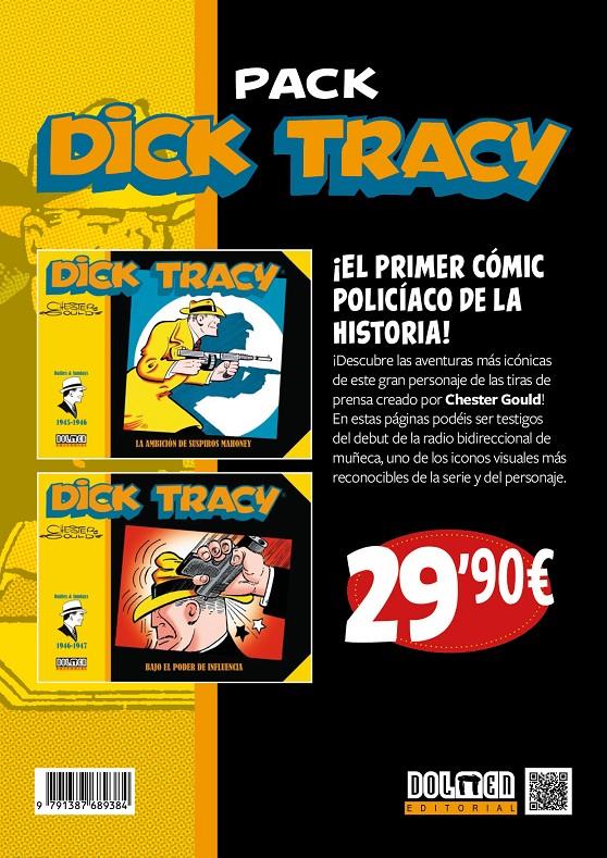 Pack con dos libros de historietas encuadernado en cartoné de 184 páginas interiores en blanco y negro cada uno más cubiertas que contienen la traducción de las historietas de la serie Dick Tracy publicadas en la prensa norteamericana.