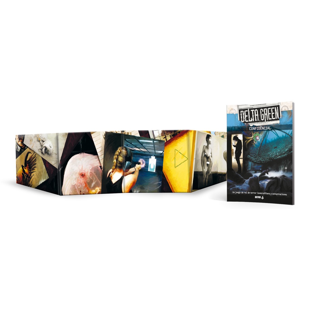 La pantalla de Delta Green ofrece al Supervisor gran cantidad de útiles herramientas para dirigir el juego. La pantalla viene acompañada por Confidencial, un libreto de 48 páginas con reglas de creación rápida, seis agentes listos para jugar y una operación de Delta Green, Lo último es lo último, lista para empezar a jugar.