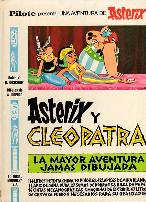 Libro de historietas encuadernado en cartoné de 48 páginas interiores en color más cubiertas que contiene la traducción del original Astérix 6. Astérix et Cléopatre publicado por Dargaud en 1965 para el mercado francobelga.