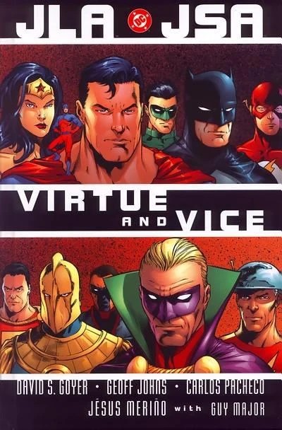 Libro de historietas encuadernado en cartoné de 112 páginas interiores en color más cubiertas que contiene la traducción del original JLA/JSA: Virtue and Vice publicado en USA por DC Comics.