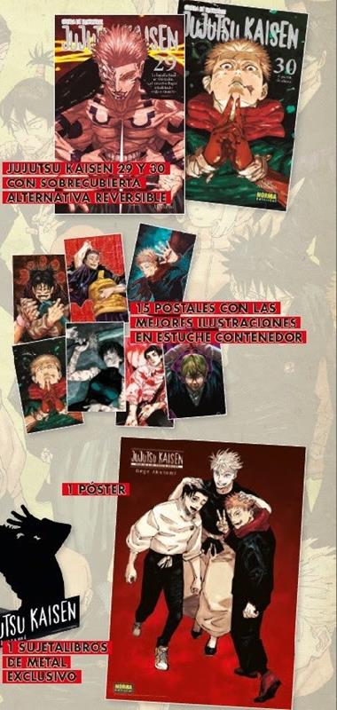EDICIÓ EXCLUSIVA PER COMMEMORAR EL FINAL DE LA SÈRIE! Jujutsu kaisen arriba al seu esperadíssim final amb els volums 29 i 30, un fermall d'or per tancar aquesta trepidant història d'acció i fantasia que ens ha deixat alguns dels personatges de màniga més carismàtics dels darrers anys. I per assenyalar aquest esperadíssim final, us oferim un pack especial i exclusiu per al nostre país on els dos volums finals vénen acompanyats d'extres per fer-nos més suportables el comiat d'Itadori, Gojo i els altres. No us perdeu aquesta fantàstica edició especial dels toms 29 i 30, exclusiva i limitada! Edició especial limitada que conté: Jujutsu kaisen 29 i 30 amb sobrecoberta alternativa reversible 15 postals amb les millors il·lustracions en estoig contenidor 1 pòster 1 subjectallibres de metall exclusiu.