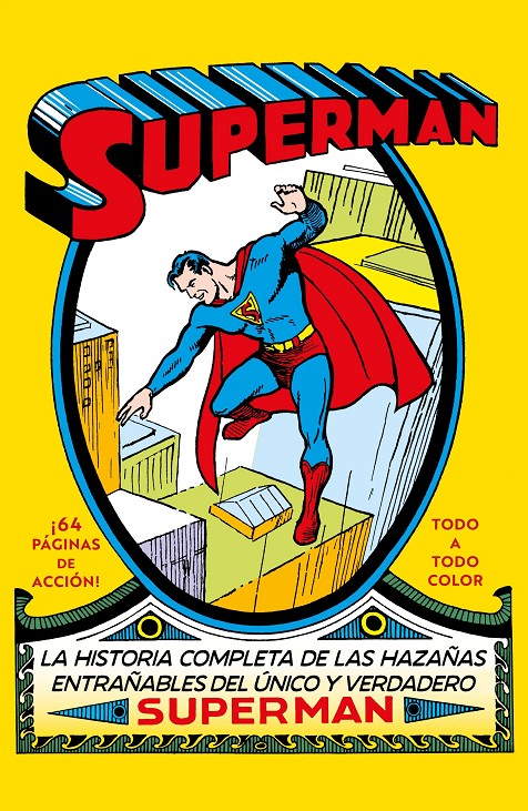 Cuaderno de historietas grapado de 64 páginas interiores en color más cubiertas que contiene la traducción del comic book original Superman 1 Facsimile Edition publicado en USA por DC Comics.