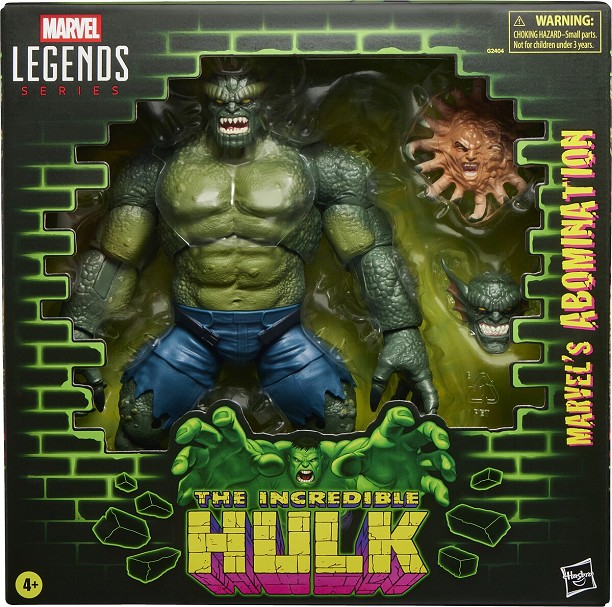 Hasbro suma a su catálogo de Marvel Legends Series la figura de Abomination (conocido como Abominación en España), inspirada en su apariencia en los cómics de "The Incredible Hulk". Esta figura coleccionable de 15 cm presenta un acabado premium con diseño fiel al personaje y más de 20 puntos de articulación que permiten recrear poses dinámicas. Incluye 1x cabeza alternativa con expresión diferente y 1x cabeza con el efecto de mutación, ambas basadas en distintas etapas del personaje en los cómics, ofreciendo múltiples opciones de exhibición. Se presenta en una caja con ventana.