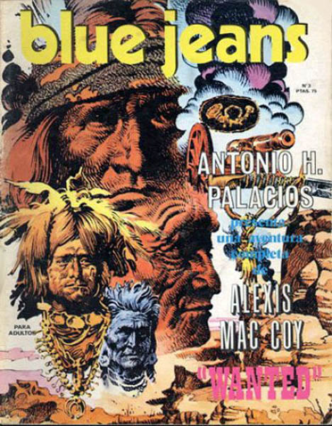 Revista de historietas grapada de 74 páginas interiores en blanco y negro y en color más cubiertas dedicada casi en su totalidad a la traducción de obras francesas e italianas, pero también publicó historietas argentinas y, en menor medida, de autores españoles, como Palacios, Enric Sió, José Ortiz, Brocal Remohí, Alfonso Font, Martín Saurí, etc. Serie de 28 volúmenes de los cuales los primeros 16 llevaban el título de Blue Jeans y a partir del 17 y hasta el final se denominó Super Blue Jeans pasando a ser encuadernada en rústica y de mayor tamaño.