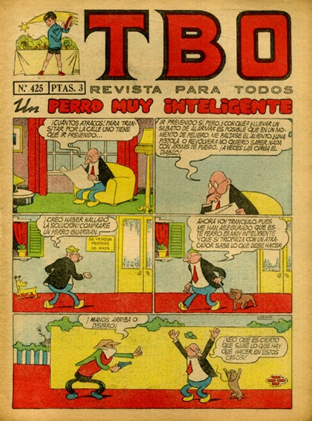 Revista de historietas grapada de 16 páginas interiores en blanco y negro y en color más cubiertas en color que contiene una selección de historietas de autores españoles. Serie de 789 volúmenes y 69 números extraordinarios iniciada en 1952, que retoma la