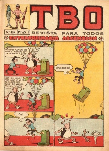 Revista de historietas grapada de 16 páginas interiores en blanco y negro y en color más cubiertas en color que contiene una selección de historietas de autores españoles. Serie de 789 volúmenes y 69 números extraordinarios iniciada en 1952, que retoma la