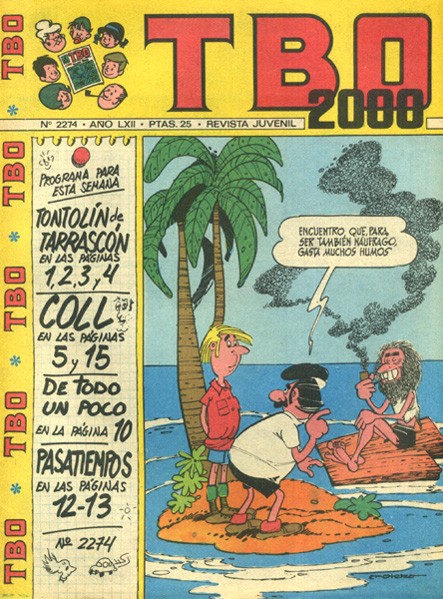 Revista de historietas grapada de 16 páginas interiores en blanco y negro y en color más cubiertas en color que contiene una selección de historietas de autores españoles. Serie de 503 volúmenes, 137 números extraordinarios y 14 números especiales iniciad