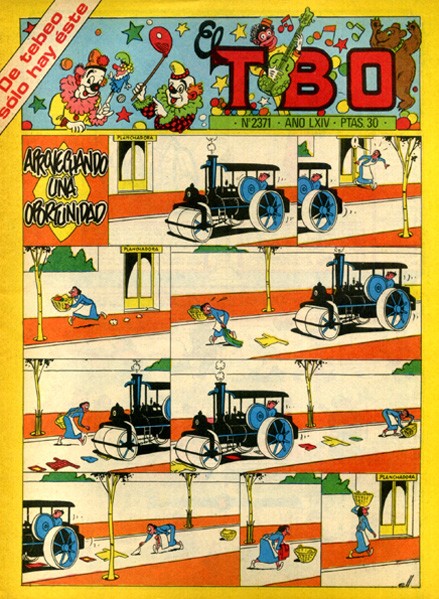 Revista de historietas grapada de 16 páginas interiores en blanco y negro y en color más cubiertas en color que contiene una selección de historietas de autores españoles. Serie de 503 volúmenes, 137 números extraordinarios y 14 números especiales iniciad