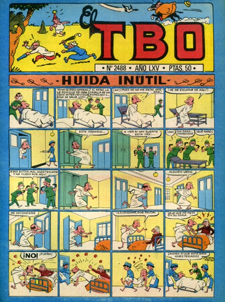 Revista de historietas grapada de 16 páginas interiores en blanco y negro y en color más cubiertas en color que contiene una selección de historietas de autores españoles. Serie de 503 volúmenes, 137 números extraordinarios y 14 números especiales iniciad