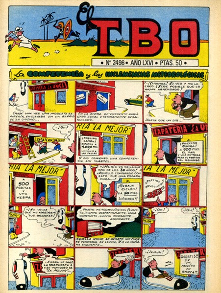 Revista de historietas grapada de 16 páginas interiores en blanco y negro y en color más cubiertas en color que contiene una selección de historietas de autores españoles. Serie de 503 volúmenes, 137 números extraordinarios y 14 números especiales iniciad