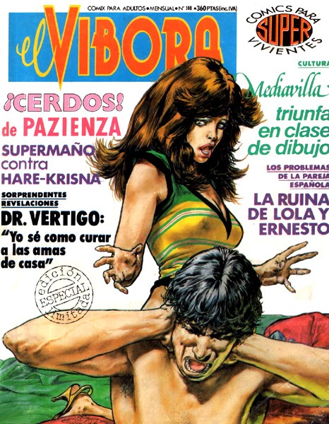 Revista de historietas grapada con número de páginas interiores variable en blanco y negro y color más cubiertas. Colección de 277 volúmenes que alcanzó los 300 números ya que 23 tenían doble numeración, además de 28 números especiales fuera de numeración.El Víbora nació en 1979 gracias al editor Jo...